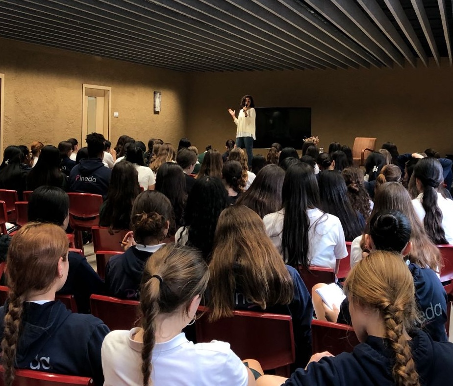 Una jove pelegrina que va caminar des de Finisterre fins a Jerusalem va parlar a les alumnes de 4t d’ESO i Batxillerat sobre la seva experiència.