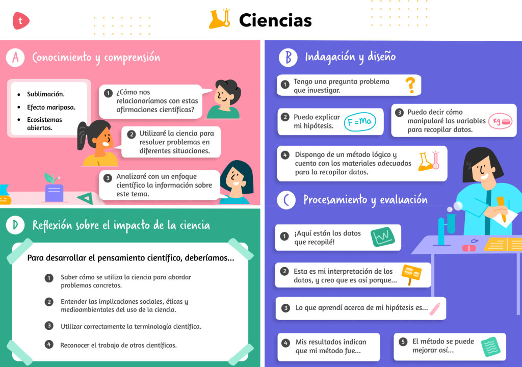 L’avaluació en Ciències del PAI es basa en quatre criteris que reflecteixen les diferents dimensions de l’aprenentatge científic: