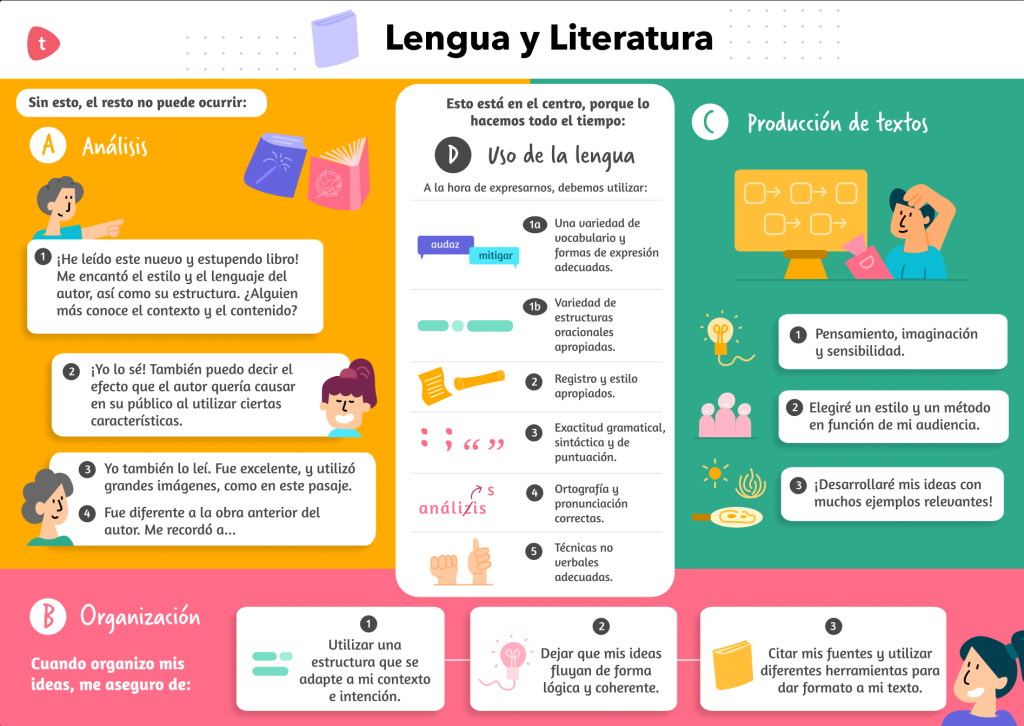 En la matèria de Llengua i Literatura, el professor acompanya l’alumna en la descoberta de la llengua com a eina per expressar el  pensament, la creativitat i la reflexió, així com l’habilitat del seu ús.